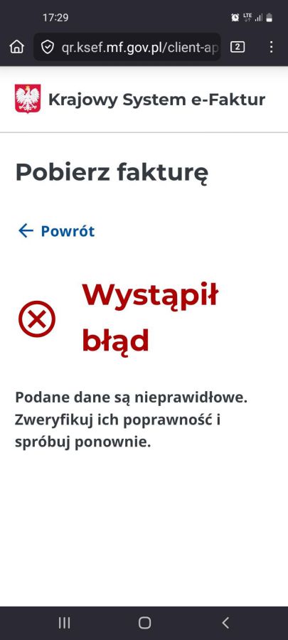 KSeF - WYSTĄPIŁ BŁĄD