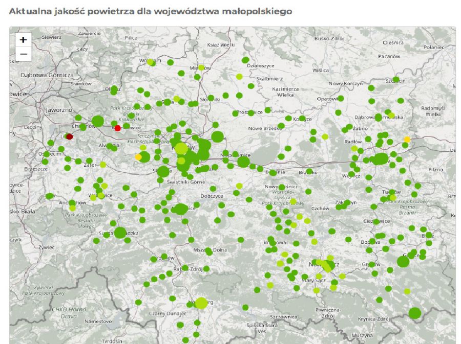 Od ponad dwóch miesięcy mapa jakości powietrza w Krakowie wygląda tak - jak na załączonym zdjęciu.